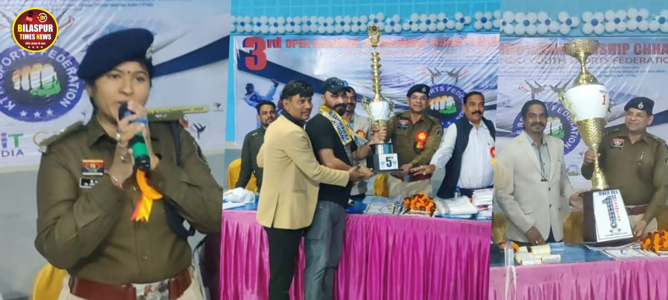 बिलासपुर, 2 जनवरी 2025/ खेलो ताइक्वांडो यूथ स्पोर्ट्स फेडरेशन द्वारा 29 से 31 दिसंबर 2025 तक तीन दिवसीय राष्ट्रीय ताइक्वांडो प्रतियोगिता का आयोजन जिला खेल परिसर हॉल सरकंडा में आयोजित किया गया। प्रतियोगिता में मुख्य अतिथि एडिशनल एसपी राम गोपाल करियारे, अतिरिक्त पुलिस अधीक्षिका डॉ. अर्चना झा एवं खेलो ताइक्वांडो यूथ स्पोर्ट्स फेडरेशन के डायरेक्टर रिमझिम गुप्ता, अध्यक्ष टी आर बाबा पात्रे, मास्टर राजकुमार यादव, संरक्षक, महासचिव इंटरनेशनल मास्टर गणेश सागर उपस्थित रहे।